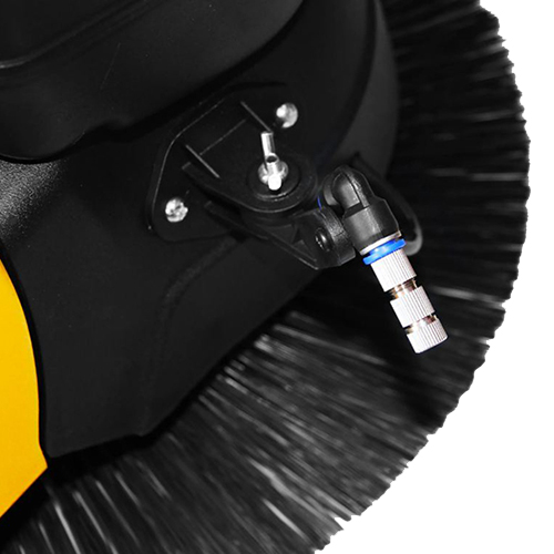 Thiết bị có bình chứa nước dung tích 2.6 lít, kết hợp với vòi phun nước ở ngay cạnh chổi quét giúp giảm khói bụi trong quá trình máy vận hành, đảm bảo hiệu quả làm sạch bụi bẩn lên tới 99,9%.