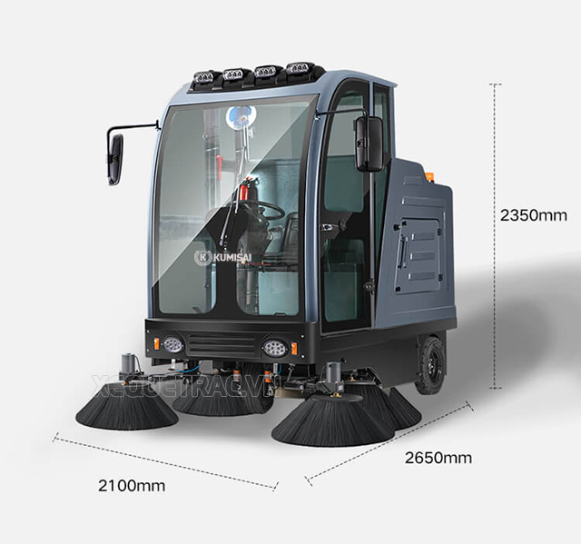 Kích thước xe quét rác công nghiệp ngồi lái Kumisai KMS-S13